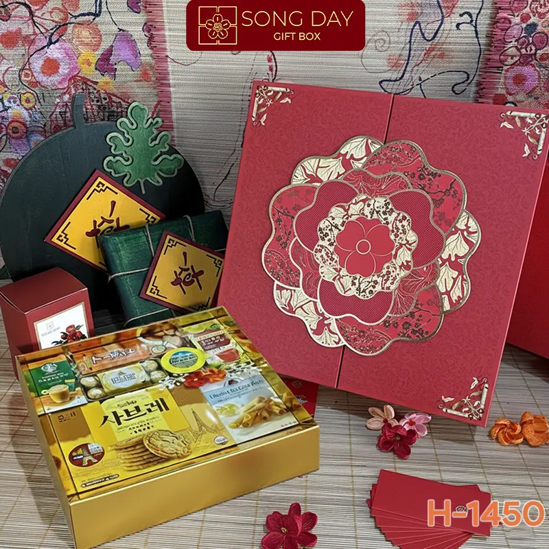 Bộ hộp Tân Xuân Như Ý có đến 5 mẫu hộp với 5 màu sắc, thiết kế họa tiết khác nhau, quý khách hàng có thể tùy chọn loại thiết kế hộp nào mà mình mong muốn.