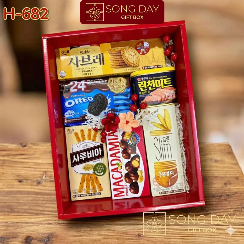 Bên trong hộp quà là những món ăn ngon, bổ dưỡng, đến từ nhiều quốc gia và vùng miền khác nhau có: