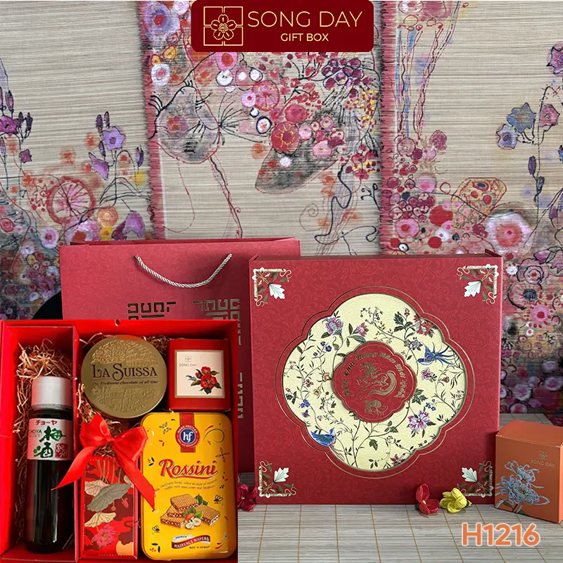 H1216 – Món quà tri ân đẳng cấp cho đối tác và người thân trọng yếu. Hình ảnh trăm hoa đua sắc được họa sĩ Hà Hùng Dũng thể hiện trên hộp quà như lời chúc về sự hòa hợp, tươi mới và thăng hoa trong năm mới. Từng đường nét của bức tranh gợi nhắc đến sự phồn vinh và rực rỡ của mùa Xuân. Hộp quà Xuân An – An Khang Như Ý 4 không chỉ là món quà ý nghĩa, mà còn là tác phẩm nghệ thuật tuyệt đẹp, là sự lựa chọn hoàn hảo để trao gửi yêu thương đến gia đình, bạn bè và đối tác trong dịp Tết Nguyên Đán.